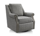 England's Annie swivel gliding chair has an undoubtedly sophisticated flair. Its recessed rolled arm, optional nailhead trim, and comfortable seat make it a welcome addition to any home. Choose from any of our solid, patterned, or matched stripe and plaid fabrics to make it all your own!