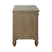 Liberty Furniture Americana Farmhouse Credenza in Dusty Taupe 615-HO121. Be distinctively different with the Americana Farmhouse credenza. Crafted with excellence using poplar solids and white oak veneers, this piece features a Wire-Brushed Dusty Taupe finish. There are five full extension drawers including two file storage drawers. The file storage drawers are wood framed and are accented with Antique Brass drop ring hardware. Knob hardware accents the remaining three drawers with the Antique Brass finish. Show off your craftsman's flair with the Americana Farmhouse credenza.