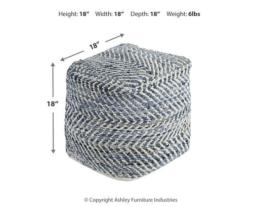 Ashley FurnitureThis darling pouf is queen of the blue jeans. Woven from strips of denim, the square shape will be a favorite go-to seat or ottoman. It’s also stur...