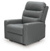 Specifications Dimensions 36''W x 40''D x 42''H Weight 109.0lbs. Brand Name Signature Design by Ashley® Material Leather Match Lifestyle Contemporary Shade Light Assembly Assembly Not Required UPC 24052964677 Features P2 Power Reclining Power Adjustable Head Rest Jumbo Stitch.