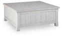 This lift-top coffee table is sure to impress with its timeless traditional vibe. Thanks to the antiqued white finish and wood grain texture, modern farmhouse design has never been so fashionable. A large drawer and a handy bin underneath the lift top are ideal for storing items out of sight. This versatile piece makes it so easy to eat, work or play from the comfort of your sofa.